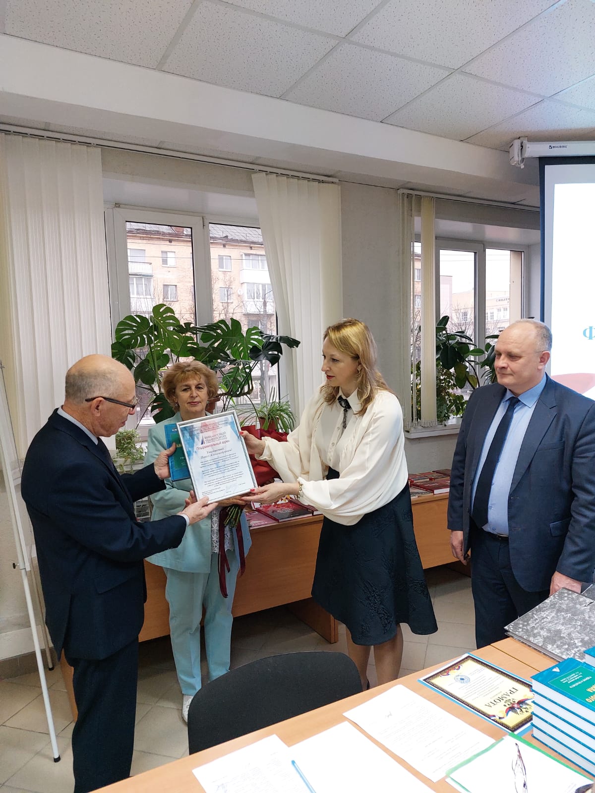 В начале заседания Ученого совета филиала было осуществлено торжественное поздравление директором филиала Светланой Васильевной Земляк доцента кафедры «Математика, информатика и общегуманитарные науки» Прохоренкова Павла Александровича с Юбилеем 75-летием. Светлана Васильевна пожелала юбиляру крепкого здоровья и дальнейших творческих профессиональных успехов на благо Финансового университета.